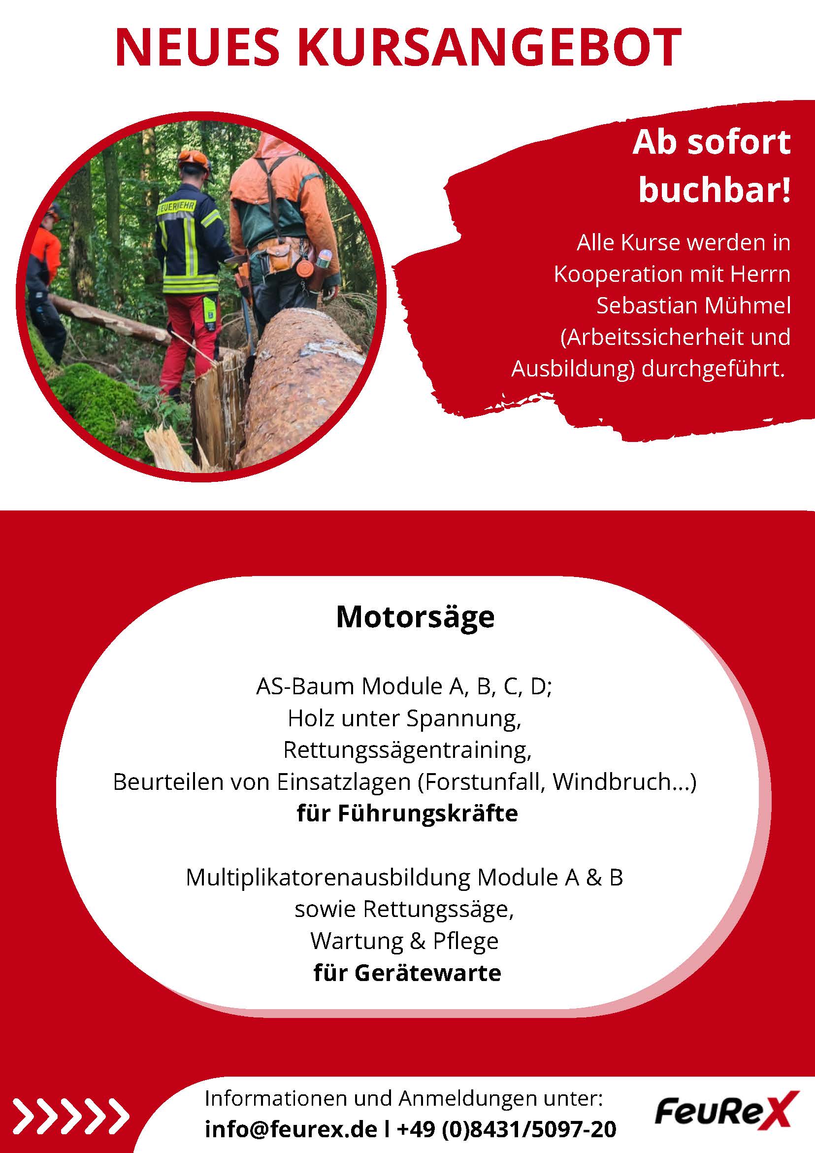 Auftragsdetail: Motorsägenkurse (Module, Beurteilung, Multiplikatorenschulung, Wartung, etc.)